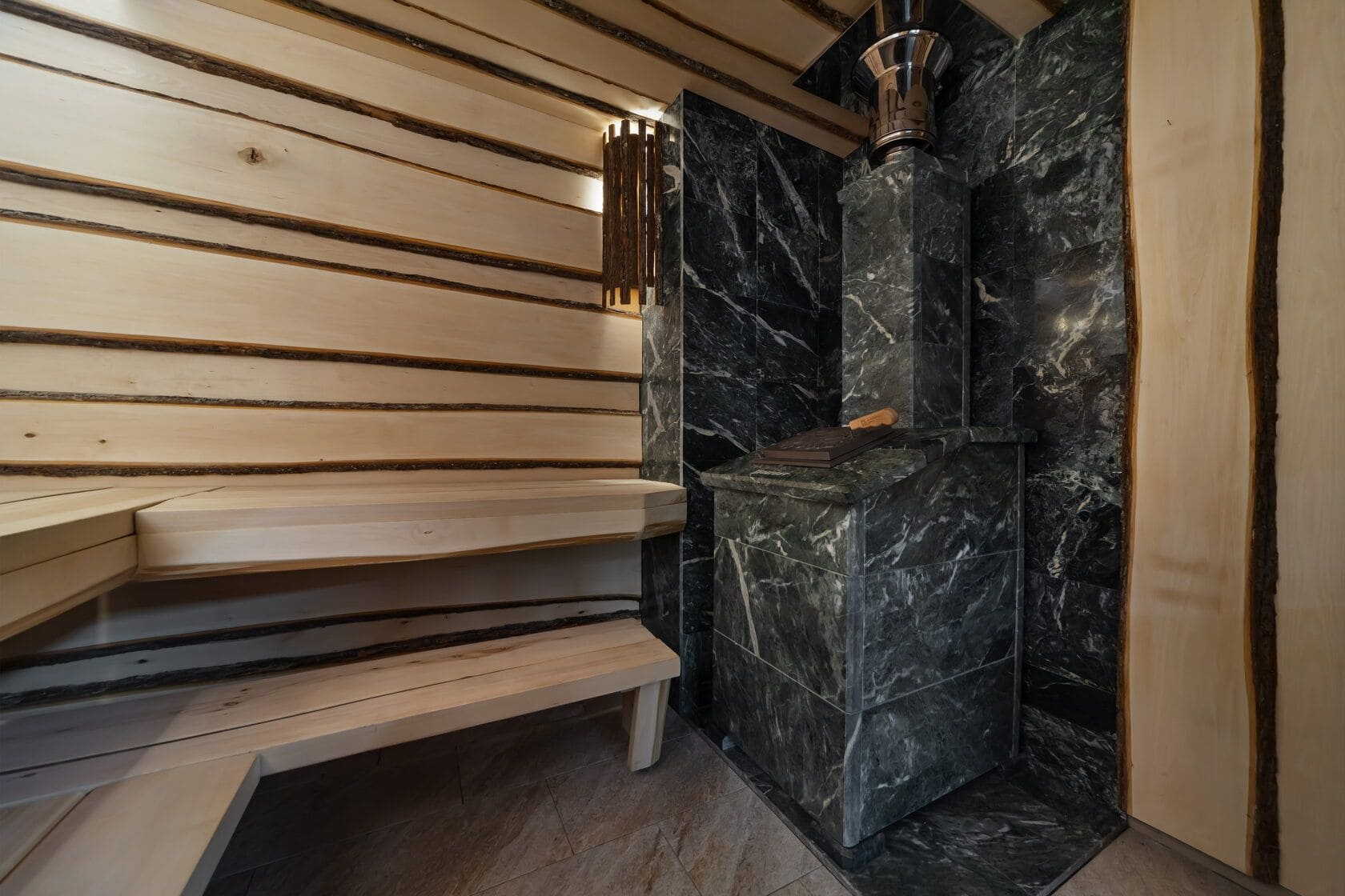 Эта парная стала воплощением идеи живого уюта: природные материалы, продуманная эргономика и атмосферное освещение создают идеальное пространство для отдыха и восстановления.