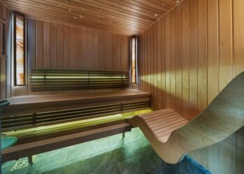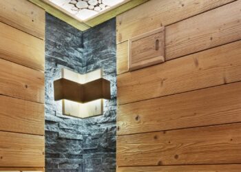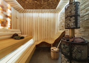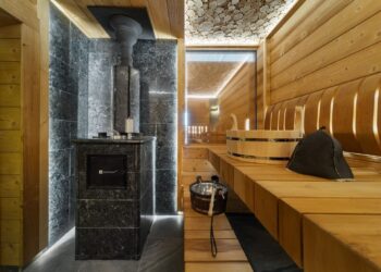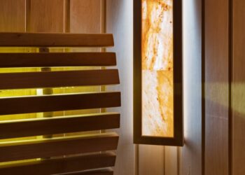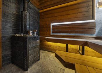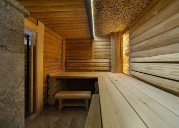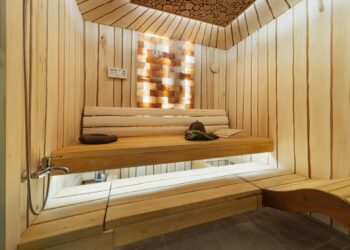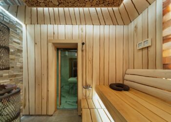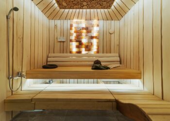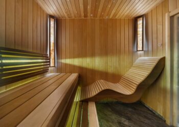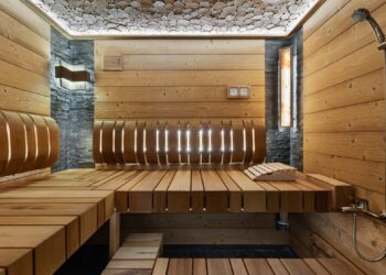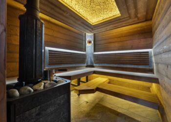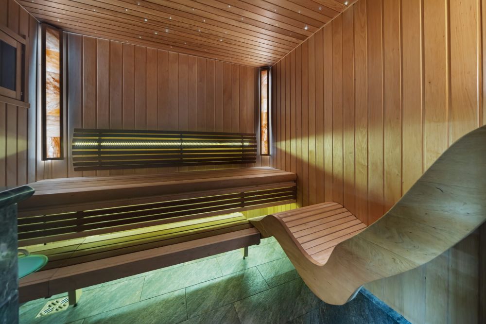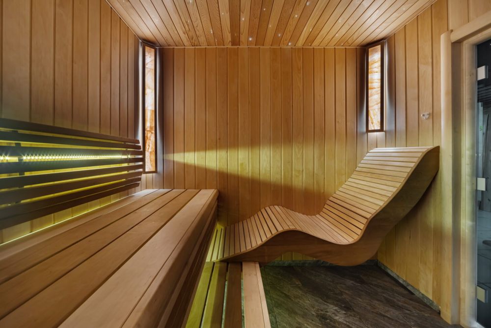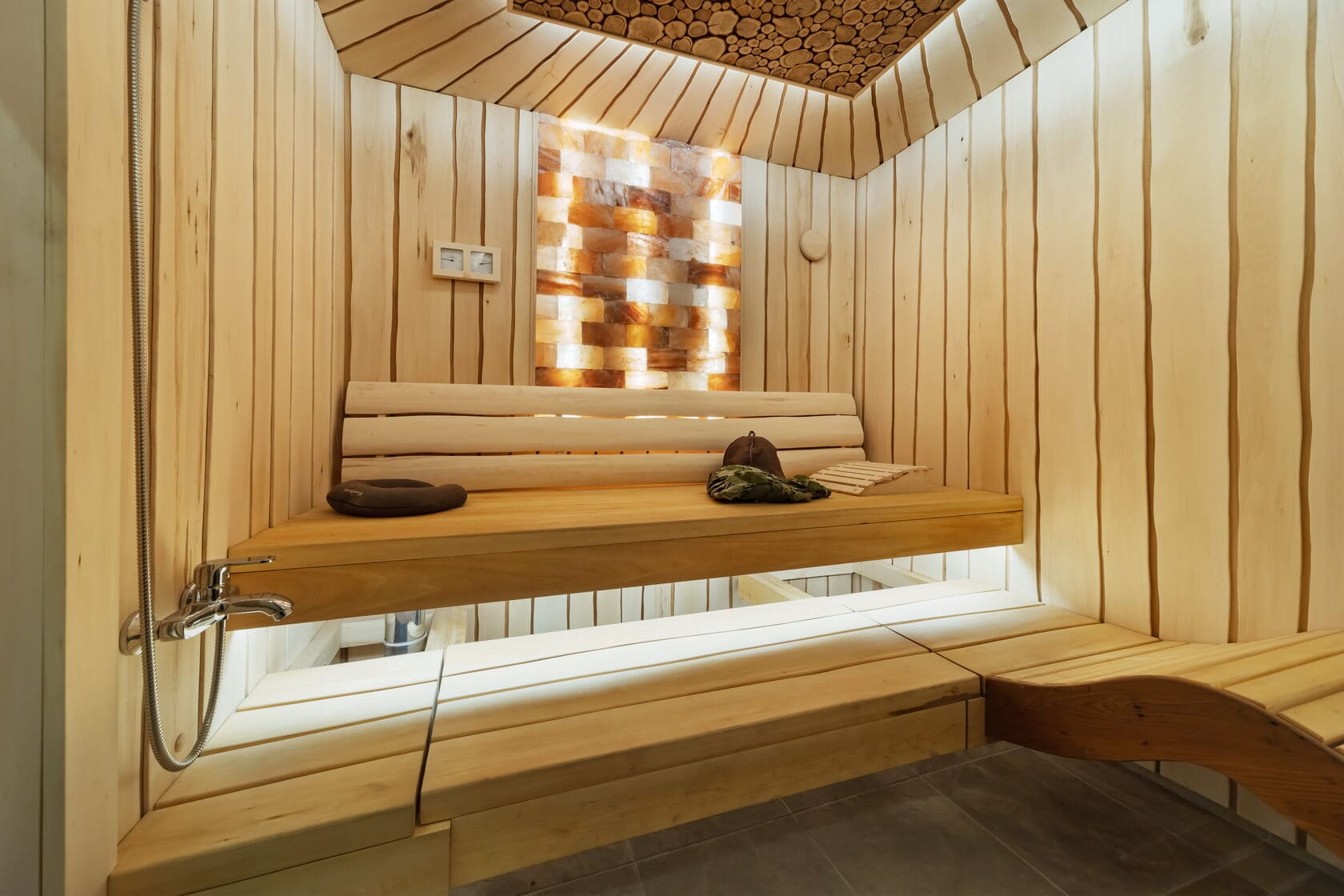 Парная с отделкой из липы волна, печью «Атмосфера L», соляным панно и системой «Второе дыхание» для идеального микроклимата