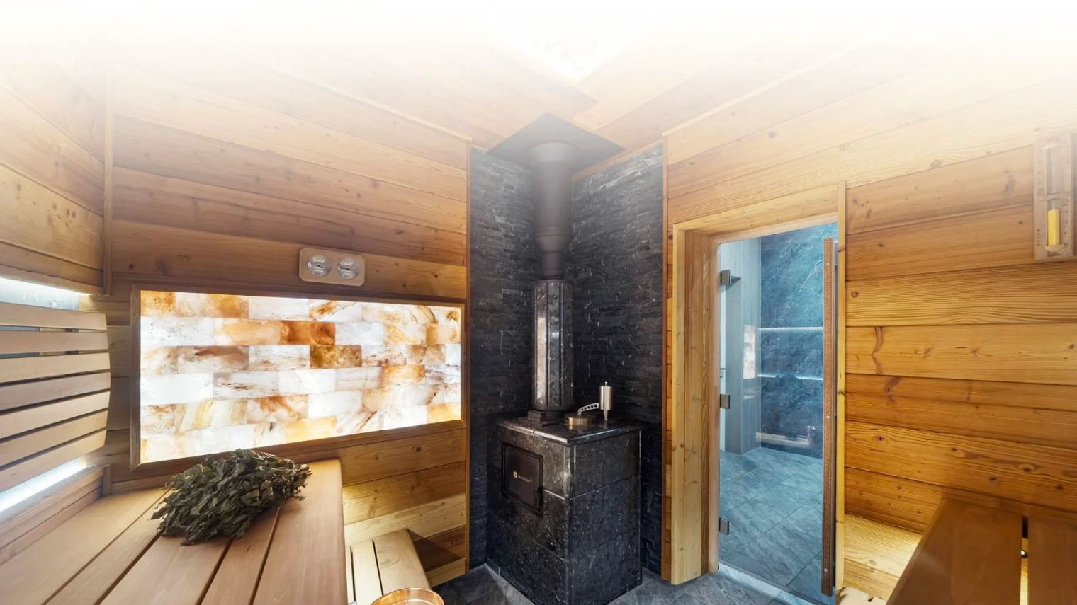 Парная из ольхи, с печью Easysystem «Сочи-2», c талькомагнезитом Tulikivi и освещением «Звёздное небо»